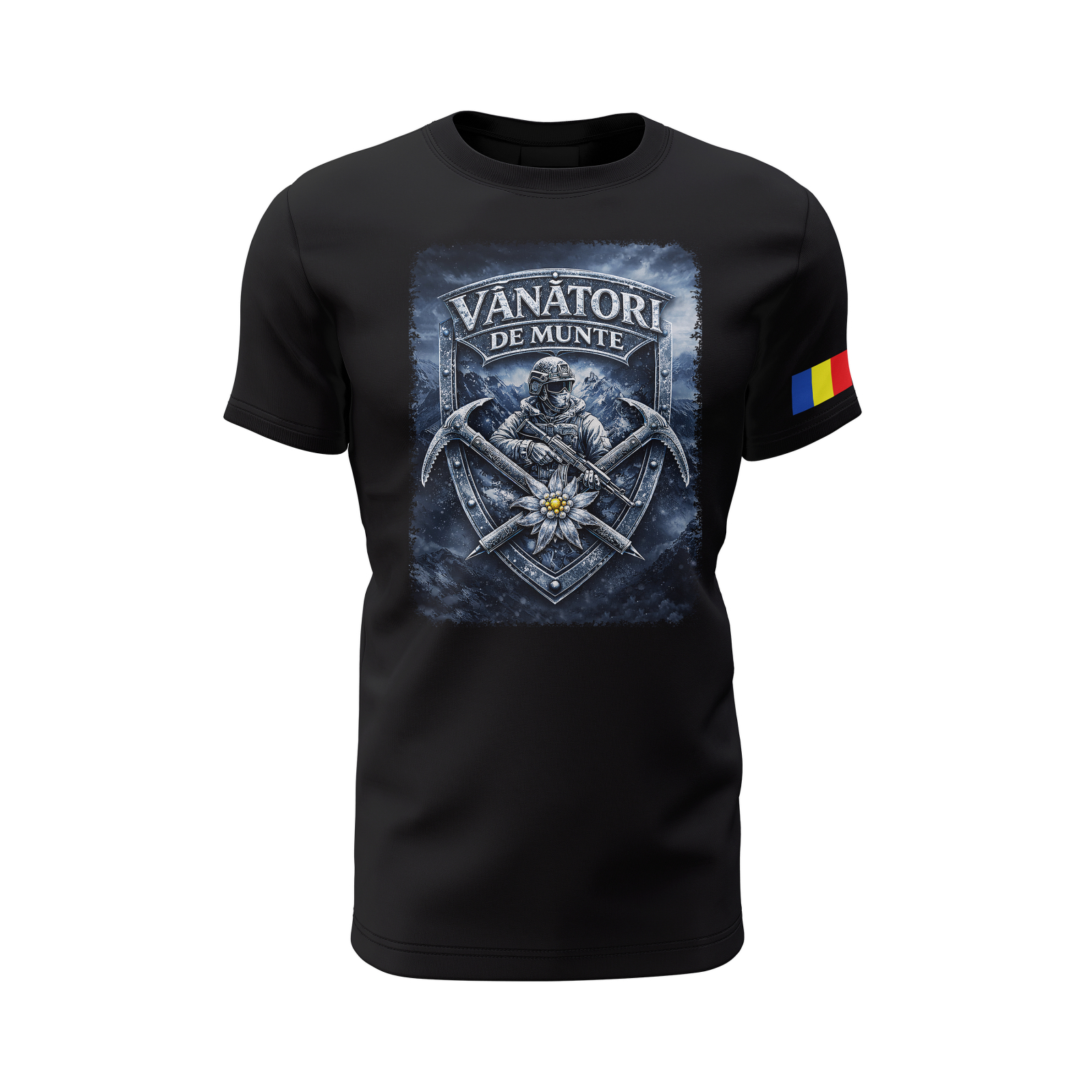Grafica este un omagiu adus Vânătorilor de Munte Români, militari patrioţi și devotaţi, antrenaţi în condiții dificile în teren muntos, pentru a restabili siguranţa în România când situaţia o impune.